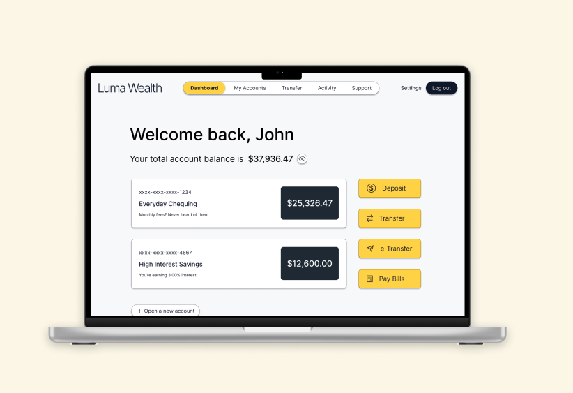 A concept banking platform focused on transparency, approachability, and real human support—reimagining how people understand and manage their money online.
