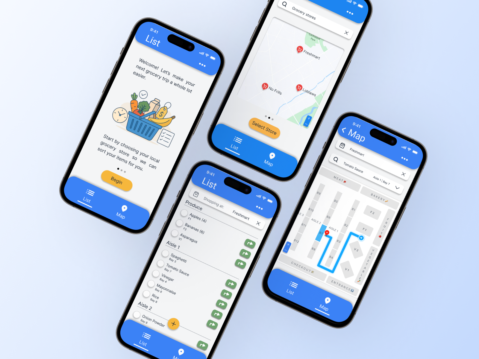 A mobile app that organizes grocery lists by store layout and guides users aisle-by-aisle reducing friction, decision fatigue, and time spent wandering the store.
